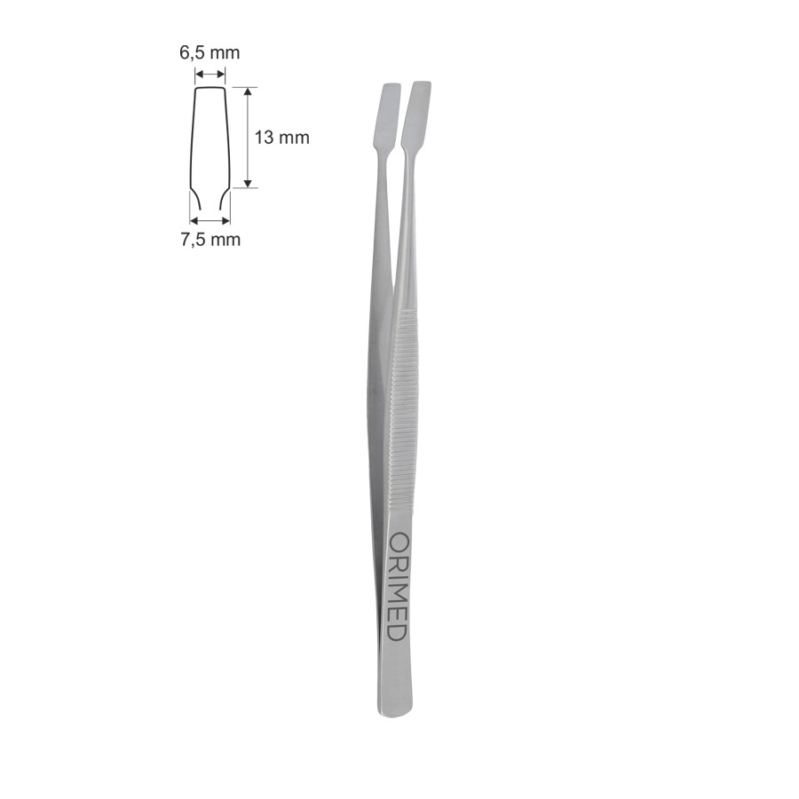 | Więcej informacji: | Ręczny instrument stomatologiczny zaciskany jest poprzez ściśnięcie między palcami (bez uchwytów pierścieniowych). Nie jest urządzeniem elektrochirurgicznym. Pęsety mają różne: 1/ kształty (uniwersalne, odwrotne, z zamkiem), 2/ kąty nachylenia części pracujących (proste, wygięte), 3/ materiały (stalowe lub dodatkowo wzdłuż szczęk wklejona wkładka z węglika spiekanego), 4/ wzory (nacięcia, otwory, płaskie, powłoka), 5/ szerokości, długości i żłobienia szczęk, 6/ szerokości i długości pęsety. | |